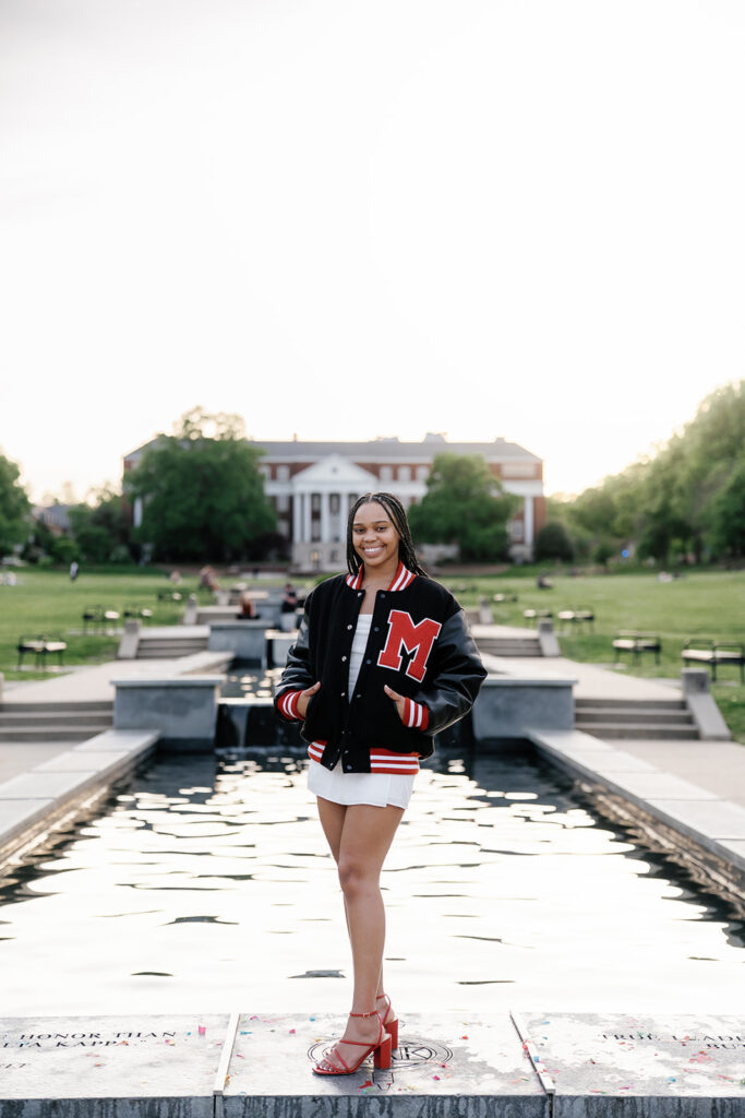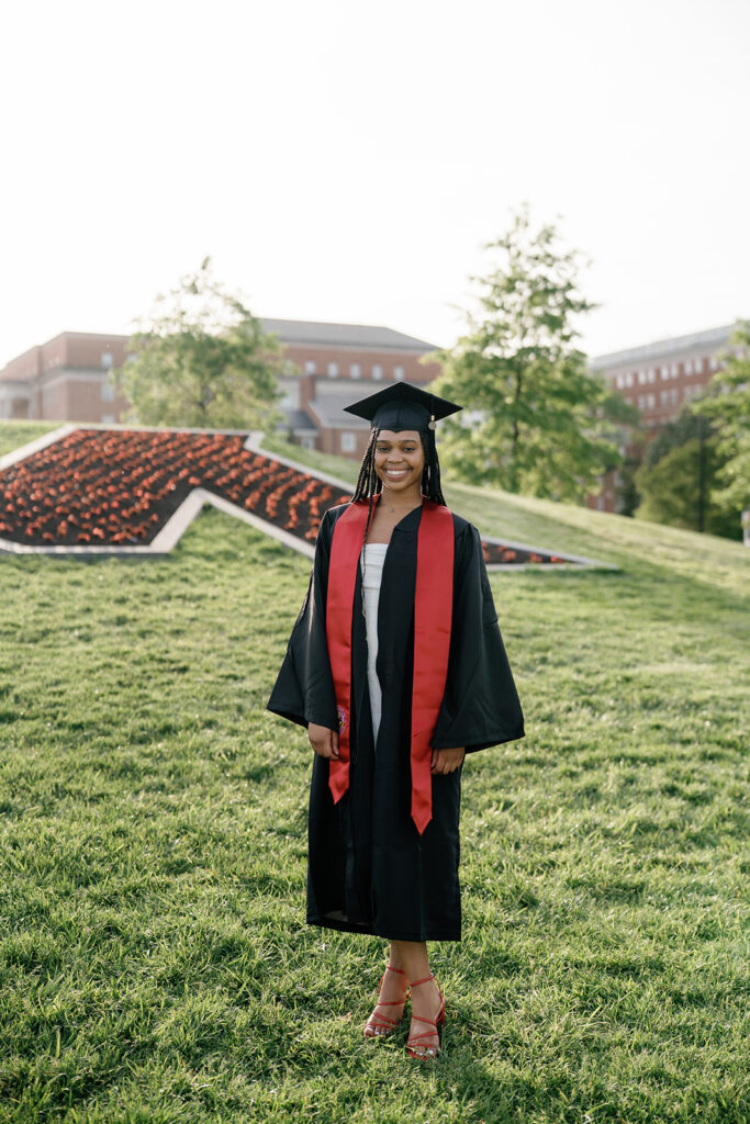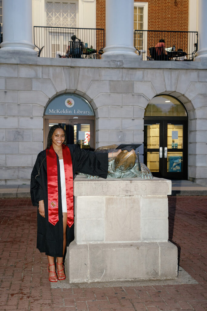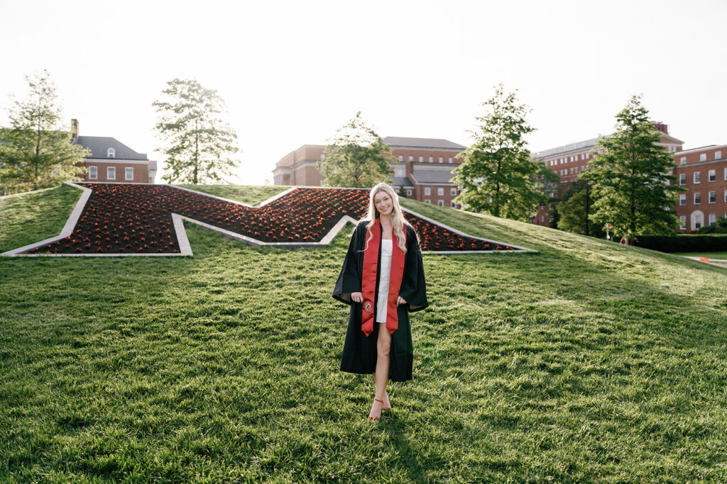 McKeldin Mall is a not only a favorite location of mine on campus, but a lot of my grads! There is so much to offer at the mall, especially if you’re looking for a variety of backdrops for photos. From the fountain to the to the tree-lined walkways, Testudo plus McKeldin Library and of course you can’t forget the columns on the buildings surrounding the mall. Not too far from the mall is The “M” or as I like to call it the flowerbed M lol. During graduation they replant red flowers and it always looks stunning! As long as you bring your walking shoes, hitting all of these spots during your graduation session should be a breeze!