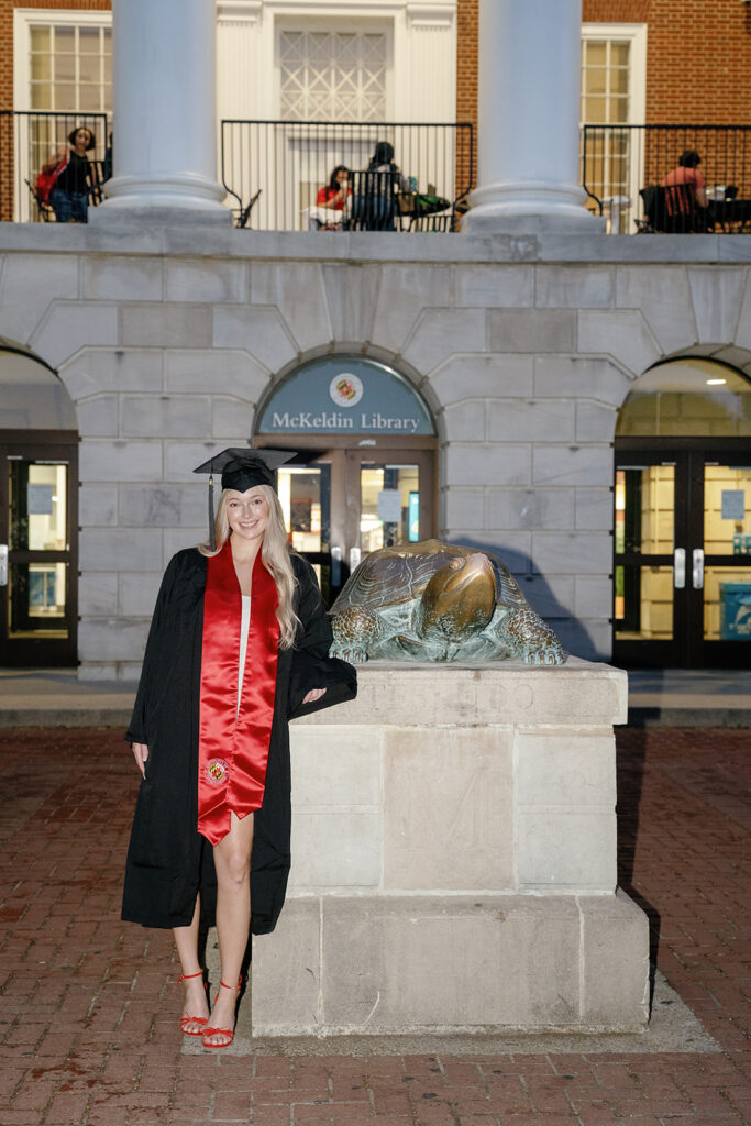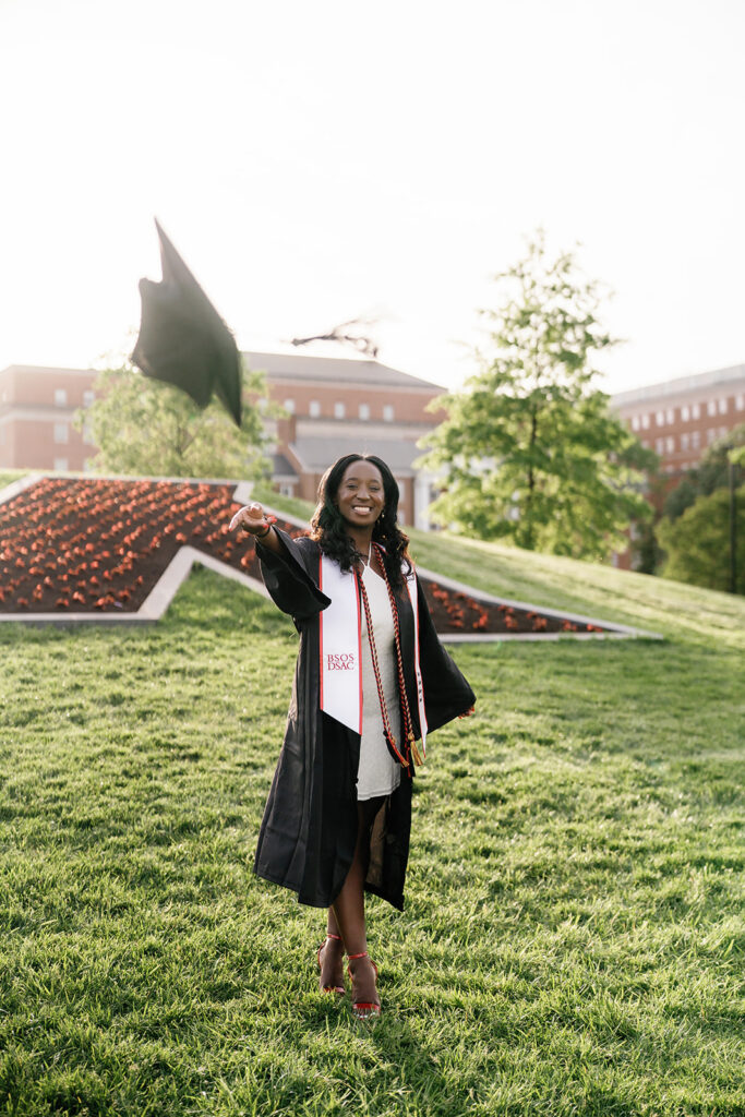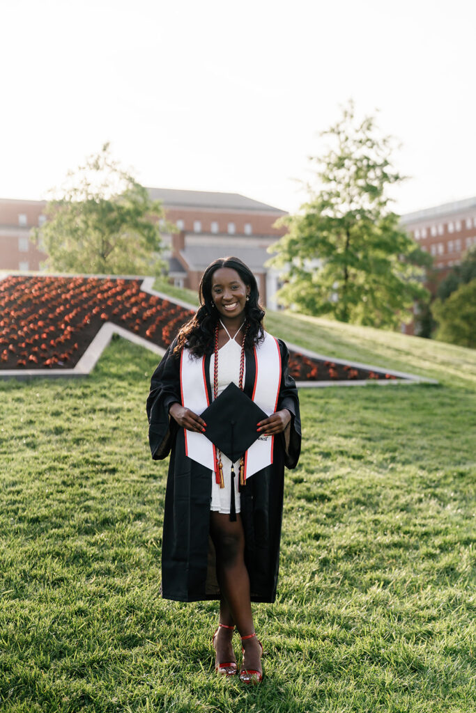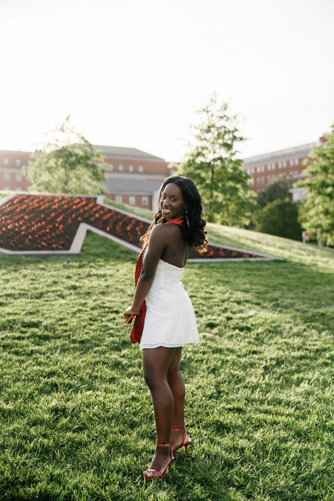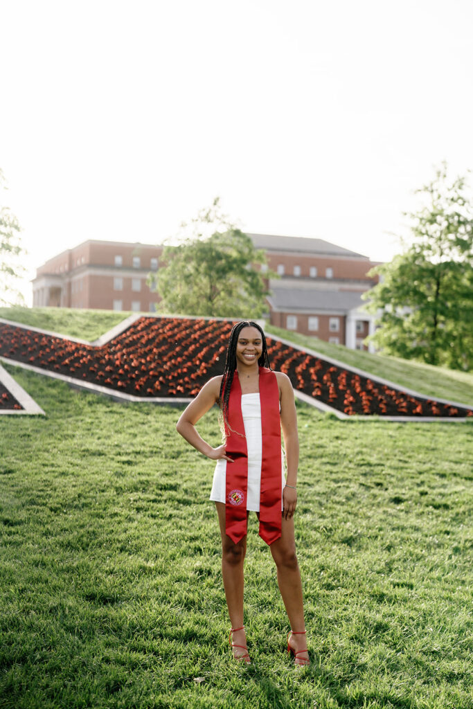 McKeldin Mall is a not only a favorite location of mine on campus, but a lot of my grads! There is so much to offer at the mall, especially if you’re looking for a variety of backdrops for photos. From the fountain to the to the tree-lined walkways, Testudo plus McKeldin Library and of course you can’t forget the columns on the buildings surrounding the mall. Not too far from the mall is The “M” or as I like to call it the flowerbed M lol. During graduation they replant red flowers and it always looks stunning! As long as you bring your walking shoes, hitting all of these spots during your graduation session should be a breeze!